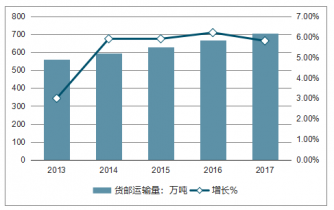 2013-2017年全國民航貨郵運(yùn)輸及增長情況