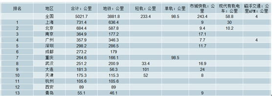 截至2017年年末,我國34個(gè)城市開通了165條城市軌道交通線路,運(yùn)營里程達(dá)到5033公里