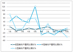 2018年1-10月全國客車細分類別產(chǎn)量增長對比