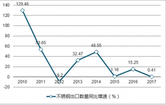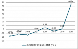 2010-2017年我國不銹鋼進(jìn)口數(shù)量同比變化(%)