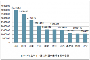 2017年上半年中國飲料酒產(chǎn)量排名前十省份情況