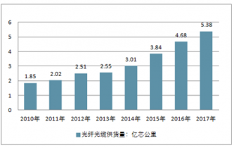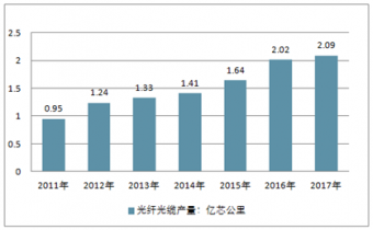 2011-2017年中國(guó)光纖光纜產(chǎn)量增長(zhǎng)情況