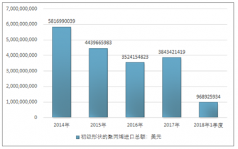2014-2018年1季度初級(jí)形狀的聚丙烯出口貿(mào)易總額走勢(shì)圖(單位:美元)