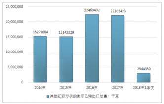 2016年我國其他初級形狀的聚苯乙烯進出口貿(mào)易總量506509490千克,2017年進出口貿(mào)易總量539140238千克;2019年1季度進出口貿(mào)易總量148680428千克。