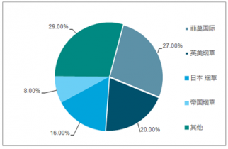 2016年全球(不包含中國(guó))煙草市場(chǎng)中,菲莫國(guó)際、英美煙草、日本煙草和帝國(guó)煙草的市場(chǎng)占有率分別為27%、20%、16%和8%,四大巨頭的占有率合計(jì)達(dá)到71%,幾乎壟斷了除中國(guó)以外的煙草市場(chǎng)。除此以外,還有雷諾煙草、奧馳亞等區(qū)域性品牌。隨著英美煙草對(duì)雷諾煙草的收購,四大巨頭的占有率仍將繼續(xù)提升。