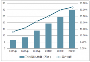 2015-2020年中國工業(yè)機器人銷量及國產(chǎn)份額測算
