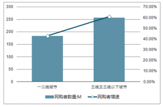 各級別城市網(wǎng)購者數(shù)量及增速走勢