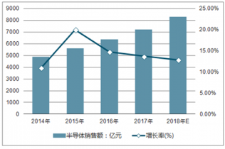 2014-2018年中國半導體產(chǎn)業(yè)銷售額及增長走勢