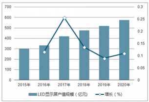 2015-2020年中國(guó)LED顯示屏產(chǎn)值規(guī)模走勢(shì)