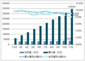 20181-11月份當(dāng)月累計(jì)社會消費(fèi)品零售總額同比增