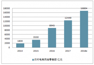 2014-2018年中國農(nóng)村電商網(wǎng)絡(luò)零售額走勢