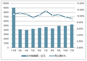 2019年1-11月鄉(xiāng)村消費(fèi)品零售額走勢