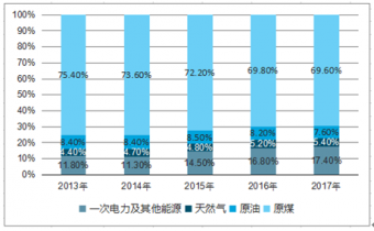 2013-2017年中國各能源產(chǎn)量占總產(chǎn)量比重