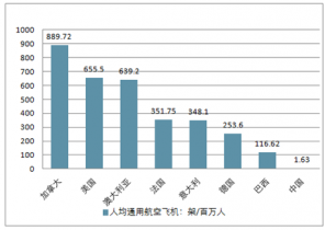 我國(guó)通航直升機(jī)市場(chǎng)存在巨大發(fā)展空間。 從總量上來(lái)看, 截止 2017 年底,我國(guó)通用航空飛機(jī)一共 2272 架,遠(yuǎn)落后于美國(guó)(僅占其 1%)、加拿大(僅占其 9%)、巴西(僅占其 9%)等國(guó)家;從百萬(wàn)人擁有通航飛機(jī)數(shù)量來(lái)看,我國(guó)每百萬(wàn)人僅擁有 1.63 架,遠(yuǎn)遠(yuǎn)落后于同期美國(guó)(655 架)、巴西(117 架)、南非(217 架)。 因此,我國(guó)通航飛機(jī)產(chǎn)業(yè)發(fā)展不僅遠(yuǎn)落后于美、加等發(fā)達(dá)國(guó)家,也遠(yuǎn)落后于巴西、 南非等新興產(chǎn)業(yè)國(guó)家。