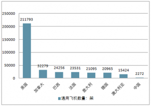 2017 年主要國(guó)家通用飛機(jī)數(shù)量(單位:架)