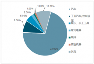 粉末冶金零件下游廣泛,主要用于汽車行業(yè)、工業(yè)電動機/控制系統(tǒng)、液壓器;娛樂、手工工具;家用電器;硬件和商業(yè)設(shè)備等方面。其中汽車行業(yè)占據(jù)主導(dǎo)地位,占比約為70%。