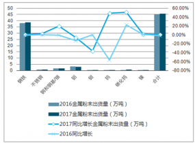 金屬粉末方面,2017年北美鐵粉出貨量約38.61萬噸,同比增長1.13%。金屬粉末總量同比增長1.29%至45.64萬噸。粉末冶金零件產(chǎn)量約為35.46萬噸,同比增長2.05%。