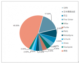 2016年GKN公司粉末冶金銷(xiāo)售收入為10.3億英鎊(折合美元15.39億美元),約占17%左右的市場(chǎng)份額。緊隨其后的為日本住友,2016年銷(xiāo)售收入為762億日元(約6.81億美元),約占8%左右的市場(chǎng)份額。