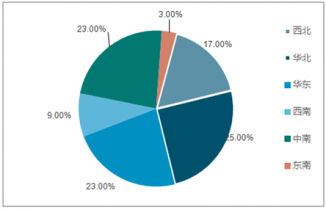 2017年中國各區(qū)域新增風電裝機容量占比情況(單位:%)