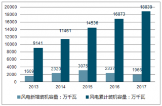 2013-2017年中國風(fēng)電市場新增和累計裝機容量(單位:萬千瓦)