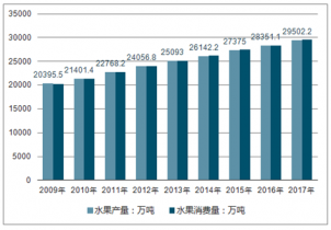 2009-2017年中國水果行業(yè)產(chǎn)銷量情況