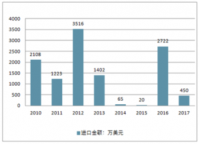2010-2017年中國(guó)硅錳合金(硅錳鐵)進(jìn)口數(shù)量分析