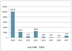 2010-2016年我國(guó)硅錳合金的出口幾乎是持續(xù)下滑,2017年出口稍有增長(zhǎng),200-2017奶奶整體來(lái)看還是呈現(xiàn)下降趨勢(shì)。