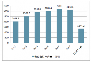 2012-2018年1-6月全國(guó)電動(dòng)自行車(chē)產(chǎn)量情況