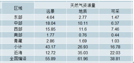 從儲(chǔ)量看,我國(guó)常規(guī)天然氣儲(chǔ)量比較豐富,經(jīng)過(guò)三次油氣資源評(píng)價(jià)得出,陸域和近海115個(gè)盆地天然氣遠(yuǎn)景資源量為55.89萬(wàn)億立方米,地質(zhì)資源量為35.03萬(wàn)億立方米,可采資源量為22.03萬(wàn)億立方米。此外,我國(guó)的非常規(guī)天然氣資源量也不可忽視,其中,天然氣水合物的資源量最大,超過(guò)100萬(wàn)億立方米,煤層氣資源量為36萬(wàn)億立方米,頁(yè)巖氣資源量大致與現(xiàn)今常規(guī)天然氣相當(dāng)或稍低,致密砂巖氣資源量為50-100萬(wàn)億立方米,水溶氣資源量為11.8-65.3萬(wàn)億立方米,可見(jiàn)非常規(guī)天然氣資源量遠(yuǎn)大于常規(guī)天然氣資源量。