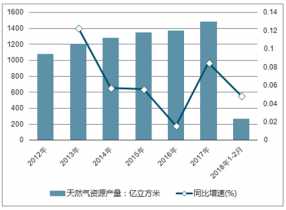 2012-2018年中國(guó)天然氣資源產(chǎn)量及增速