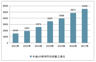 2011-2017年中國LED市場規(guī)模走勢