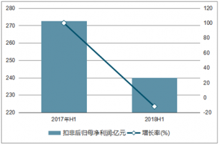 2018 年上半年,這 208 家公司合計實現(xiàn)營業(yè)收入 6494.44 億元,同比增長 12.31%,實現(xiàn)歸母凈利潤 322.33 億元,同比增長 0.76%,增速較 2017 年上半年下降十分明顯;實現(xiàn)扣除非經(jīng)常性損益后凈利潤 239.97 億元,同比下降了 11.98%,與 2017 年上半年 99.85%的增幅相差很大。
