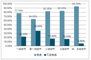 各級(jí)別城市是否考慮電商渠道購(gòu)買車輛占比情況