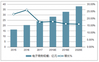 2015-2020年中國(guó)電子商務(wù)交易規(guī)模及增長(zhǎng)走勢(shì)