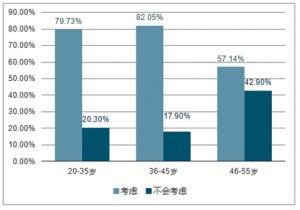 各年齡段人員是否考慮電商渠道購(gòu)買車輛占比情況