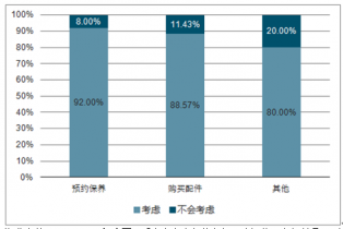 購(gòu)物經(jīng)歷上,使用汽車電商體驗(yàn)過(guò)汽車相關(guān)服務(wù)的車主在考慮電商購(gòu)車時(shí),意愿高于無(wú)此經(jīng)歷的消費(fèi)者。例如,使用電商進(jìn)行過(guò)預(yù)約保養(yǎng)的消費(fèi)者中,有92%的車主會(huì)考慮使用電商平臺(tái)購(gòu)車。