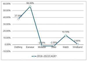 2018-2022年世界范圍內的可穿戴產(chǎn)品復合增長率預測預測
