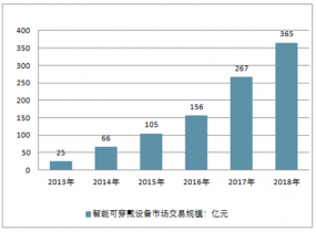 2013-2018年中國智能可穿戴設(shè)備市場交易規(guī)模走勢