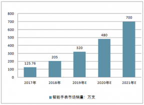 2019年中國智能手表(不包括兒童智能手表)總銷量在205萬支,同比增長了63%,智能手表品牌超過500個。2019年中國智能手表市場還將保持55%的增長幅度,達到320萬支,未來三年的復合增長率還也將保持在50%以上。