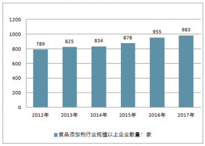 2012-2017年我國食品添加劑行業(yè)規(guī)模以上企業(yè)數(shù)量情況