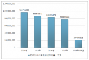 2016年我國初級形狀的聚酰胺進口總額2281093260美元,2017年進口總額2468321325美元;2018年1季度進口總額667561808美元。