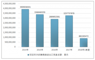 2016年我國初級形狀的聚酰胺進出口貿易總額2889852581美元,2017年進出口貿易總額3257757878美元;2018年1季度進出口貿易總額882265472美元。