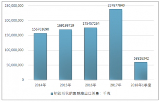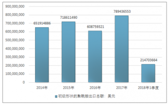 2016年我國初級形狀的聚酰胺出口總額608759321美元,2017年出口總額789436553美元;2018年1季度出口總額214703664美元。