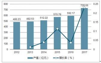 2012-2017年我國耳機(jī)行業(yè)產(chǎn)值及增長趨勢
