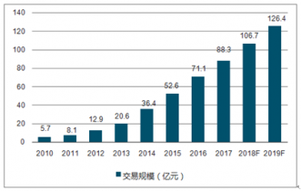 2010-2019年中國互聯(lián)網(wǎng)基礎(chǔ)教育市場交易規(guī)模預(yù)測圖
