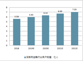 預(yù)計2019年我國互聯(lián)網(wǎng)金融行業(yè)用戶規(guī)模將達(dá)到5.58億人,未來五年(2018-2022)年均復(fù)合增長率約為6.02%,預(yù)計到了2022年我國互聯(lián)網(wǎng)金融行業(yè)用戶規(guī)模將達(dá)到7.05億人。
