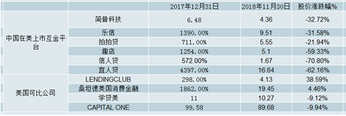 2018年部分主要互聯(lián)網(wǎng)金融上市公司股份情況