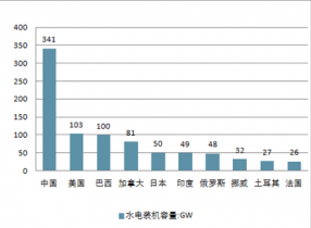 從水電裝機(jī)容量來看,2017年全球水電裝機(jī)容量為1267GW,中國水電裝機(jī)規(guī)模全球排名第.一,水力發(fā)電的裝機(jī)容量占全球總裝機(jī)容量的比重為26.91%;其次為美國水電裝機(jī)容量為103GW,占全球裝機(jī)總量的8.13%。