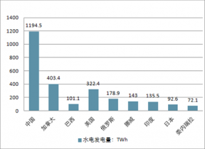 從水電發(fā)電量來看,全球主要國家中,中國水電發(fā)電量為1194.5TWh,占全球總發(fā)電量的28.5%,排名第.一;其次為加拿大,2017年水電總發(fā)電量為403.35TWh;巴西水電發(fā)電量為401.06TWh,緊隨其后。