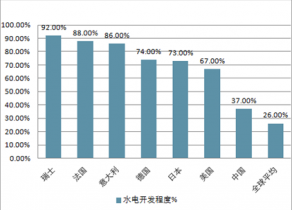 以開發(fā)程度來看,發(fā)達(dá)國家水能資源開發(fā)程度總體較高,瑞士、法國、意大利已超八成,我國水電開發(fā)程度為37%,與發(fā)達(dá)國家相比仍有較大差距,比全球平均水平稍好。